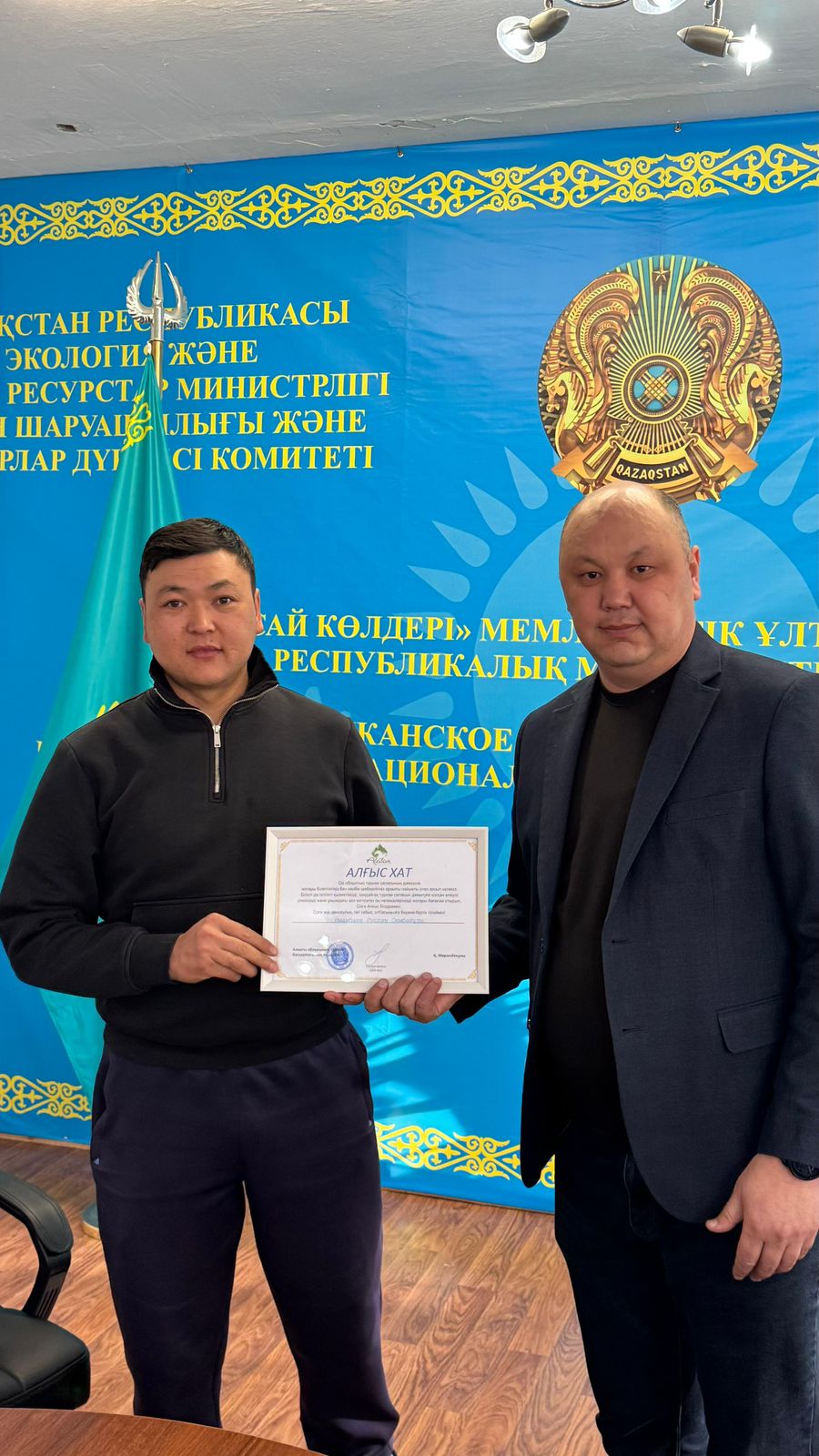 Руководитель отдела охраны и восстановления природы ГНПП «Көлсай көлдері» Ержан Исламжанов награжден нагрудным знаком Комитета лесного хозяйства и животного мира II степени.